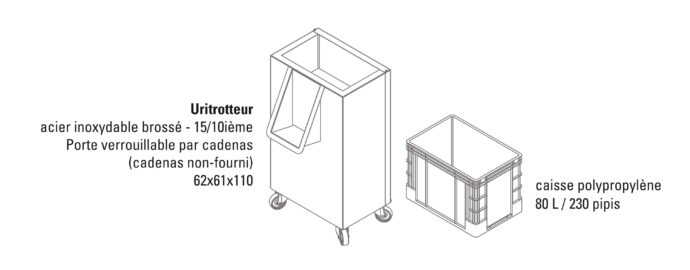 L’uritrotteur est un urinoir sec entièrement en inox, mobile, économique, écologique.